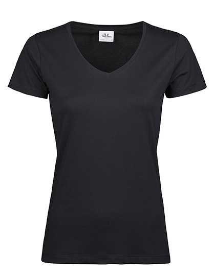 V-neck t-shirt in modern style for ladies. Slub tricot fabric made from ecologically grown cotton. Colors: 100 white, 120 grey melange, 474 dusty pink, 514 summer blue, 600 navy, 704 moss green, 900 black 100% Organic Cotton 160 g/m2 XS-XXL