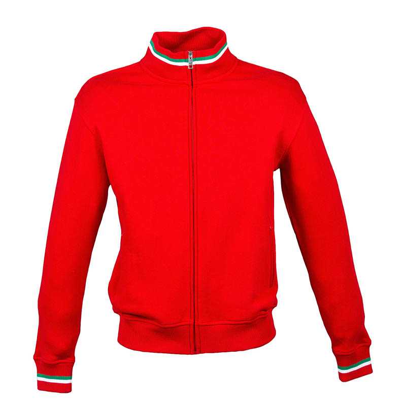 80% Cotton - 20% polyester sweater - Ribbed collar with italian color - Full zip covered - Puller with italian colors - Two pockets with zipper-covered - Ribbed cuffs - Ribbed collar, cuffs and band at the waist 8 cm h - Tape inside collar - Stitching