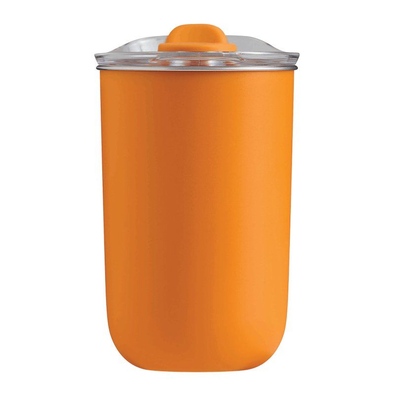 Double-walled travel mug TAKE & GO: made of stainless steel on the inside and plastic on the outside, secure screw-on plastic lid with integrated drinking opening and silicone seal, capacity approx. 350 ml, keeps warm for approx. 2 hours and cold for up t