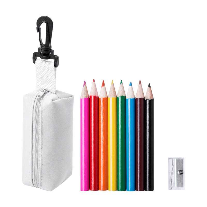 Sada 8 ks drevených farbičiek a strúhadla, v puzdre na zips zo 420D polyesteru.