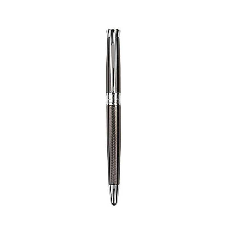 Roller značky Pierre Cardin. Roller má velmi elegantní tvar, jemné rytí po celém provrchu a obsahuje německou náplň značky Schmidt® v modré barvě s hrotem 0,6 mm. Dodáván s náhradní černou náplní v luxusní krabičce s certifikátem pravosti. Rozměry: roller 1,2 × 14 cm; balení 17,5 × 3,5 × 5,5 cm. Uhlíková stopa: gCO2 e239.