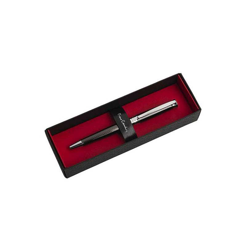 Značkové guľôčkové pero Pierre Cardin. Kovové telo pera má jemné rytie po celej dĺžke povrchu. Pero je navrhnuté s otočným mechanizmom a obsahuje kvalitnú náplň v modrej farbe s hrotom 1 mm. Má priloženú náhradnú čiernu náplň. Balené v luxusnej krabičke Pierre Cardin, dodávané s certifkátom pravosti. Odporúčaná technológia potlače: gravír, kartička. Maximálna veľkosť potlače: 25 × 4 mm. Rozmery: guľôčkové pero 1,2 × 14,2 cm; balenie 17,5 × 5,5 × 3,5 cm. Kartónové množstvo v ks: 20.