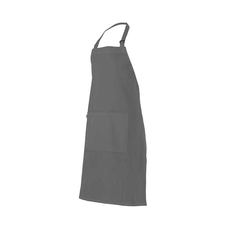Two ties at ends to fasten garment Buckle to adjust neckband 25 different colours One pocket: 1 front pocket