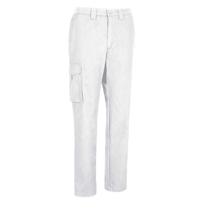 Multi-Pocket Work Trousers. Made of a sturdy cotton twill fabric blended with polyester for strength and durability.Button-and-zipped flap fastening, back and sides elasticated waistbands and belt loops for a better adjustment and a comfortable fit.Two slanted hip pockets, two buttonhole closure back pockets for easy access, a left side cutter pocket, a right side velcro cargo pocket and puller for easy opening and convenient storage.Double main seams and extra high-wear reinforcements with safety bartacks, ensuring long-lasting strength and durability.Suitable marking methods: screen printing, embroidery, transfer printing, vinyl application. Ideal as workwear and uniforms.