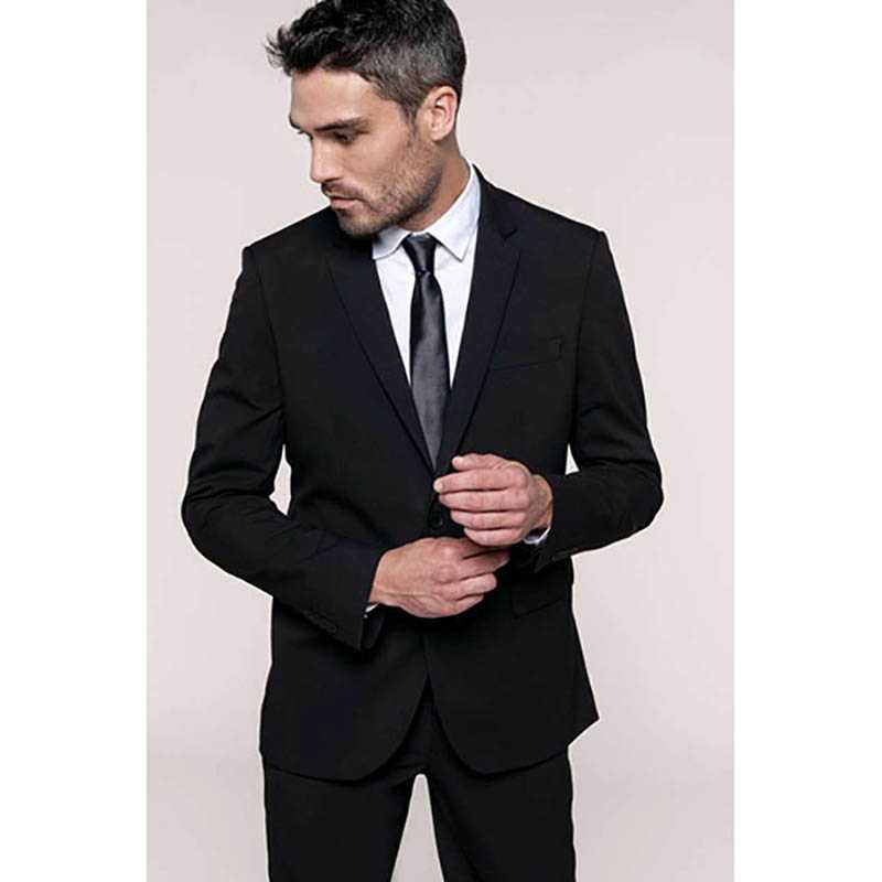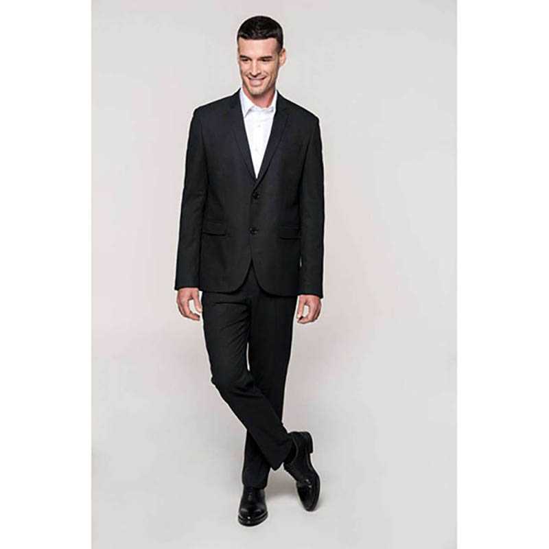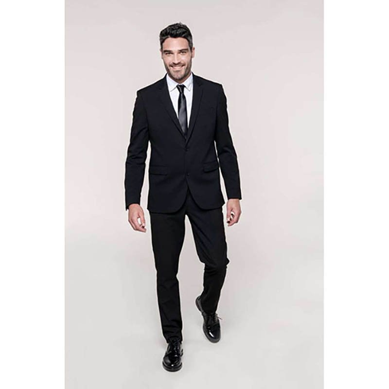 64 % polyester/34 % viskóza/2 % elastan.Podšívka zo 100 % polyesterového taftu.Bunda s 2 gombíkmi.2 predné lemované vrecká so záklopkou.1 náprsné vrecko.2 vnútorné vrecká na gombíky a 1 vrecko na telefón.Manžety so 4 gombíkmi.2 rozparky vzadu.1 neviditeľný zips na ľavej strane hrude pre prístup k zdobeniu.Certifikát STANDARD 100 podľa OEKO-TEX®N° CQ1007/8, IFTH.