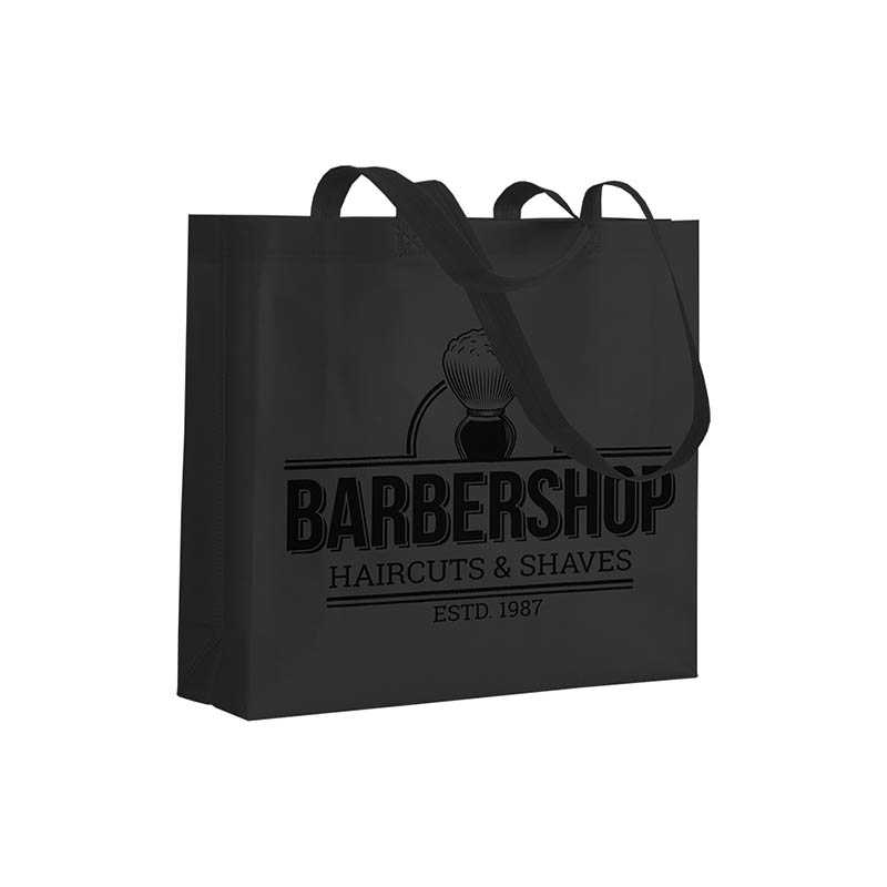 Flat Long-Handled Non-Woven Fabric Bag. Made of lightweight and water-repellent non-woven fabric with embossed finish. Seamless bottom and side seams sewn with strong thread for enhanced durability. Hemmed top contour and handles with heat-sealed cross-shaped reinforcement at the junction point for added strength. With volume of 14 litres and a load capacity of approximately 25kg.Suitable marking methods: screen printing. Ideal for a corporate gift and personalised gift.