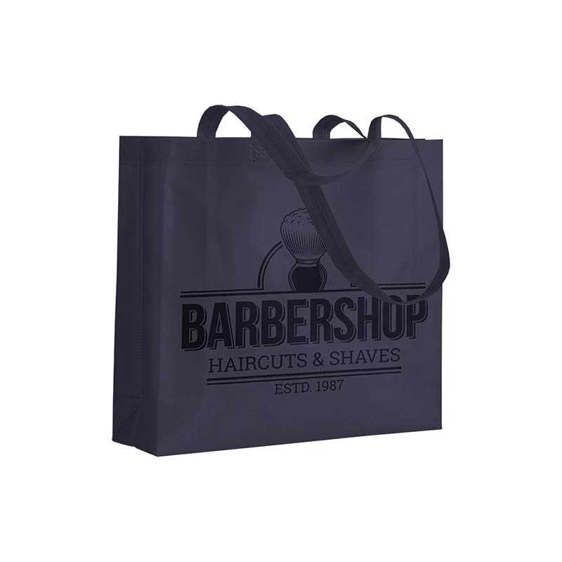 Flat Long-Handled Non-Woven Fabric Bag. Made of lightweight and water-repellent non-woven fabric with embossed finish. Seamless bottom and side seams sewn with strong thread for enhanced durability. Hemmed top contour and handles with heat-sealed cross-shaped reinforcement at the junction point for added strength. With volume of 14 litres and a load capacity of approximately 25kg.Suitable marking methods: screen printing. Ideal for a corporate gift and personalised gift.