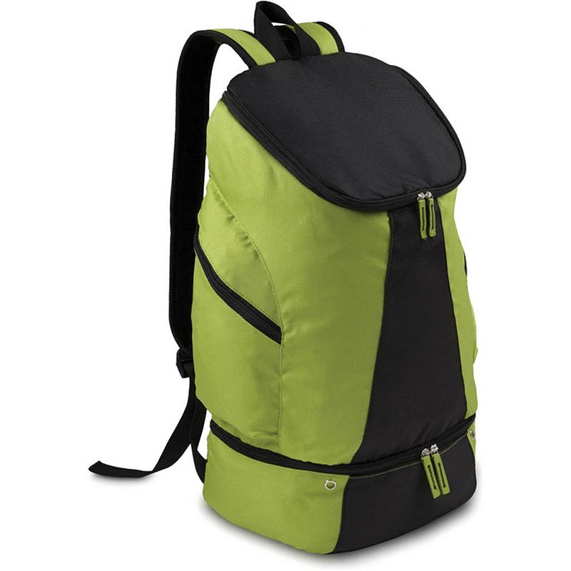 Športový batoh zo 600D polyesteru a Ripstop 300D.Veľká hlavná priehradka a spodná priehradka na topánky s očkami.Bočné vrecká, polstrovaný priedušný chrbát a nastaviteľné ramenné popruhy.