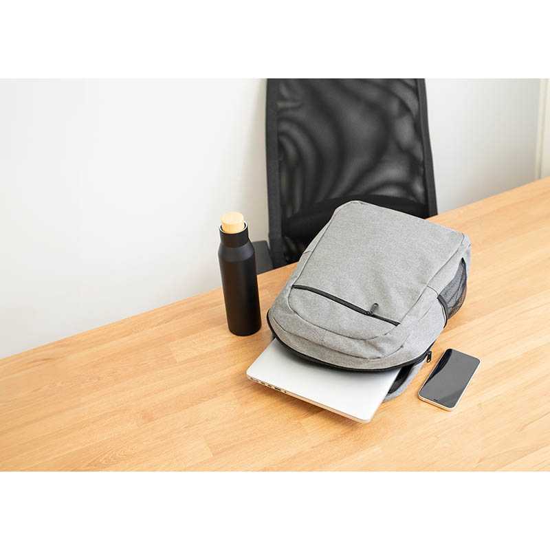 NOVINKA 2025. Vodotesný tenký batoh na notebook RPET s priehradkou na notebook (15") na zips a predným vreckom na zips. S polstrovaným chrbtom a ramennými popruhmi. Polyester 600D RPET potiahnutý PU, s výrazným štítkom RPET.