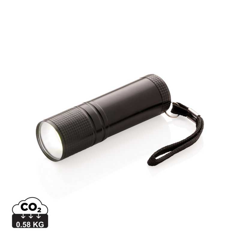 This economical practical COB LED torch with particularly bright light is especially suitable for handbags, the home and the glove box. (80 lumen, 1 watt).aluminium, black, including battery, led colour white, loop