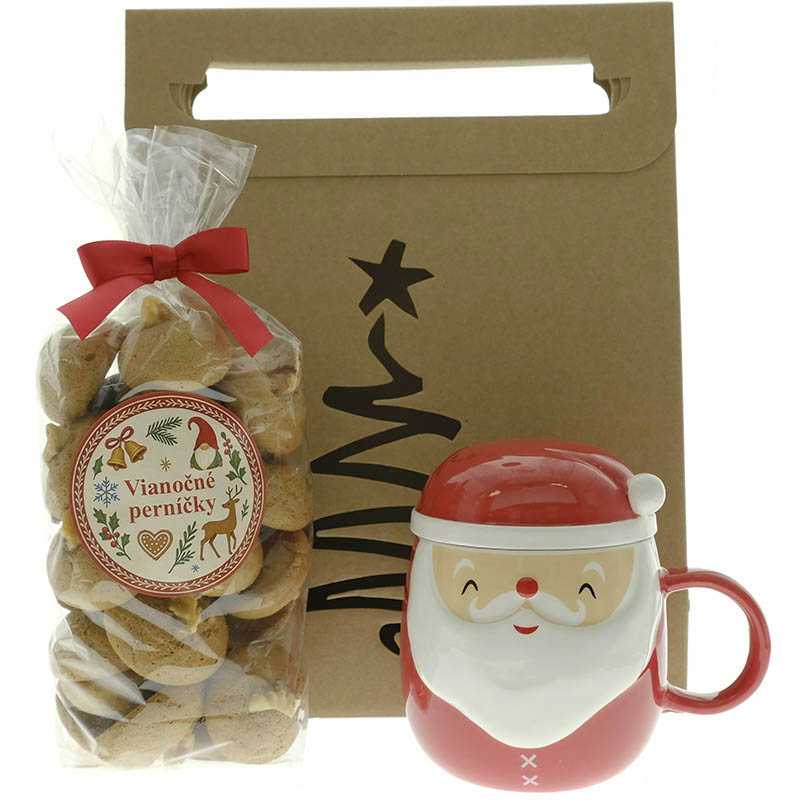 Vianočný hrnček s viečkom 370 ml, Vianočné perníky 250g. Darčeková taška 30x23x10 cm
