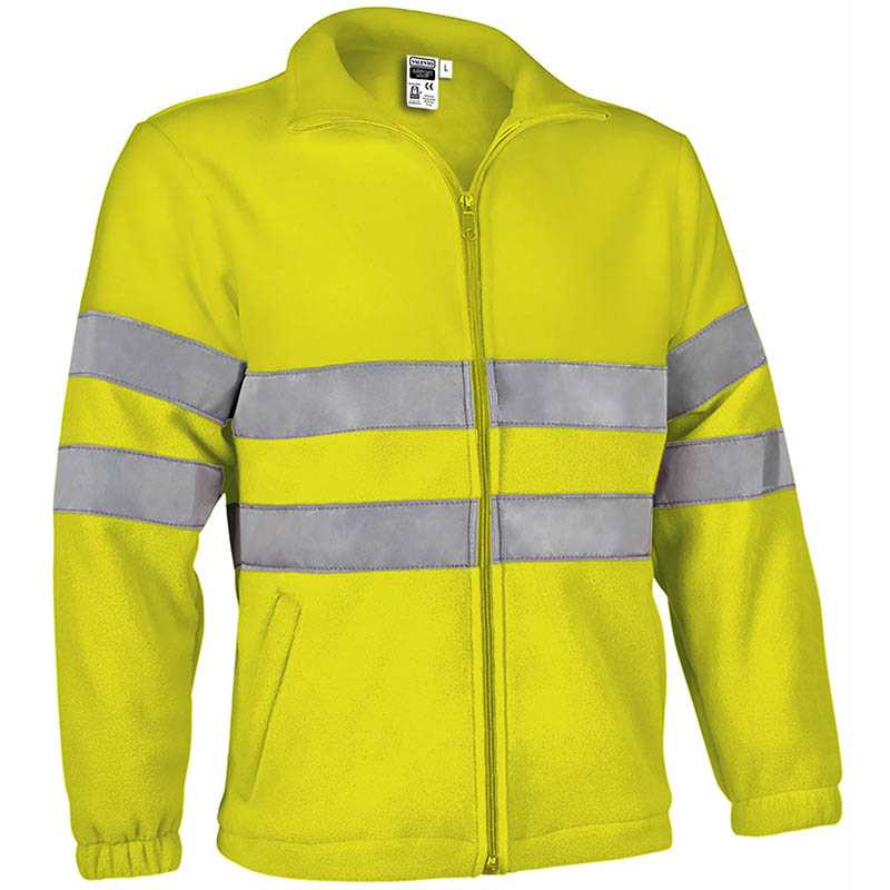 High Visibility Fleece Jacket.Made of micro fleece fabric with anti-pilling outer fabric and an inner brushed for excellent thermal insulation, includes two sewn reflective tapes on sleeves, torso and back to enhance user visibility. Garment certified as a High Visibility Category II PPE based on 13688 and 20471 standards, Class 2 for single-color model and Class 1 for two-tone models.Stand-up collar with full-zip front closure, elasticated cuffs for a better fitting, warmth and comfort. Two slanted flap zippered waist pockets for a secure and convenient storage. Suitable marking methods: embroidery, stitching, patches. Ideal as workwear and uniforms.