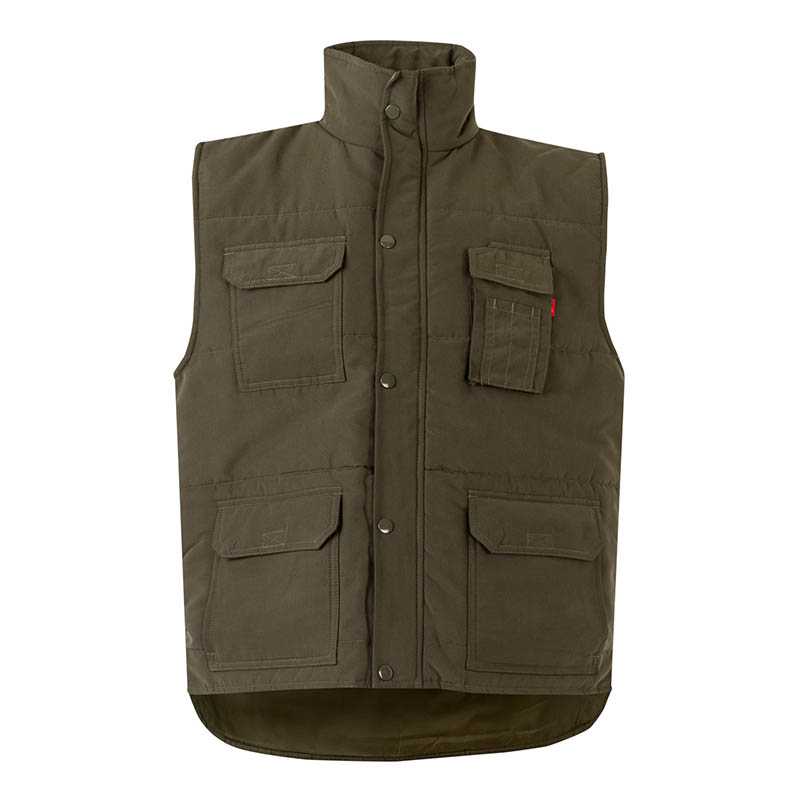 Enhanced Visibility Padded Multi-Pocket Vest.Made of a sturdy cotton twill fabric blended with polyester outer fabric for strength and durability, smooth inner lining and inner quilting for ensuring excellent thermal insulation, includes two sewn reflective tapes on torso and back to enhance user visibility. Garment certified as an Enhanced Visibility Category II PPE based on 13688 and 17353 standards, type B3 for night visibility.Two front gusseted pockets, two upper pockets, all with velcro flap fastening, a pen holder and an inner velcro pocket for a secure and convenient storage. Elasticated waistband and armholes for a secure and comfortable fit, adjustable waist with side snap button fastening for a better fit, a tailpiece that covers the lumbar zone for added comfort and also provides a large printing area. Includes an inside back zip for easy marking with different methods: screen printing, embroidery, transfer printing, badges, vinyl application. Ideal as workwear and uniforms.