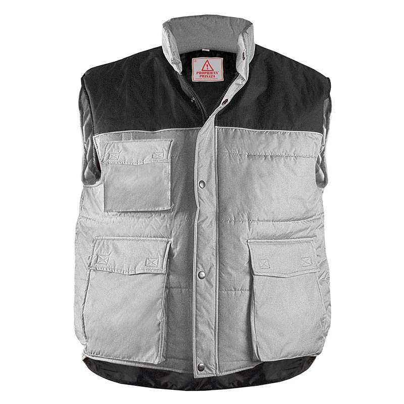 Enhanced Visibility Padded Multi-Pocket Vest.Made of a sturdy cotton twill fabric blended with polyester outer fabric for strength and durability, smooth inner lining and inner quilting for ensuring excellent thermal insulation, includes two sewn reflective tapes on torso and back to enhance user visibility. Garment certified as an Enhanced Visibility Category II PPE based on 13688 and 17353 standards, type B3 for night visibility.Two front gusseted pockets, two upper pockets, all with velcro flap fastening, a pen holder and an inner velcro pocket for a secure and convenient storage. Elasticated waistband and armholes for a secure and comfortable fit, adjustable waist with side snap button fastening for a better fit, a tailpiece that covers the lumbar zone for added comfort and also provides a large printing area. Includes an inside back zip for easy marking with different methods: screen printing, embroidery, transfer printing, badges, vinyl application. Ideal as workwear and uniforms.