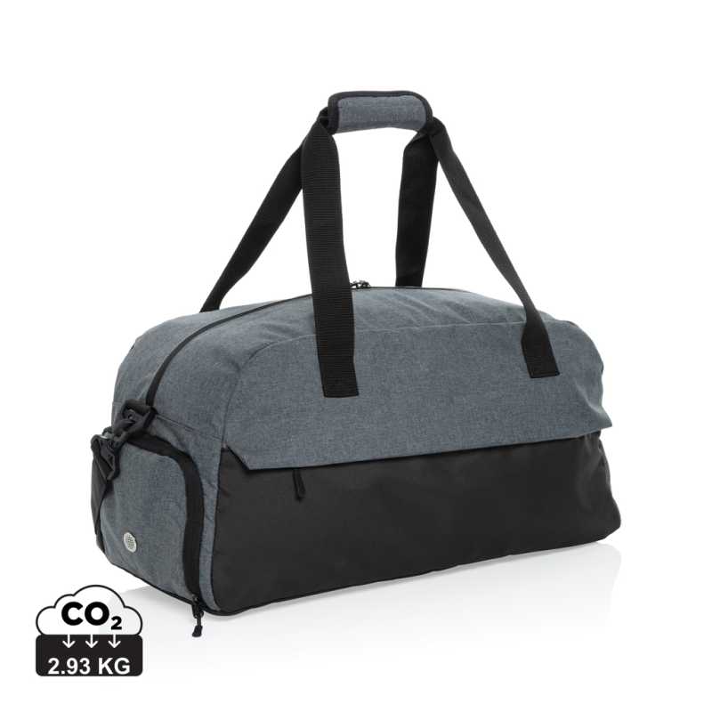 NOVINKA 2025. Cestovní taška z recyklovaných tkanin o gramáži 450g (60 % recyklovaná bavlna a 40 % recyklovaný polyester) s nastavitelným a odnímatelným bavlněným popruhem.