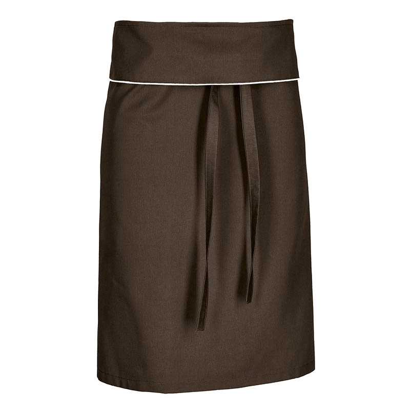 Pocketless Waist Apron with Hidden Straps under the Flap.Made of a sturdy cotton twill fabric blended with polyester for strength and durability.Side straps for optimal waist adjustment, tied with a knot.Double flap waist with contrasting colour piping and two hidden eyelets to get the straps tied and concealed. Hemmed contour for added strength and durability.Suitable marking methods: screen printing, embroidery, transfer printing, vinyl application.Ideal as hospitality clothing and promotional clothing.