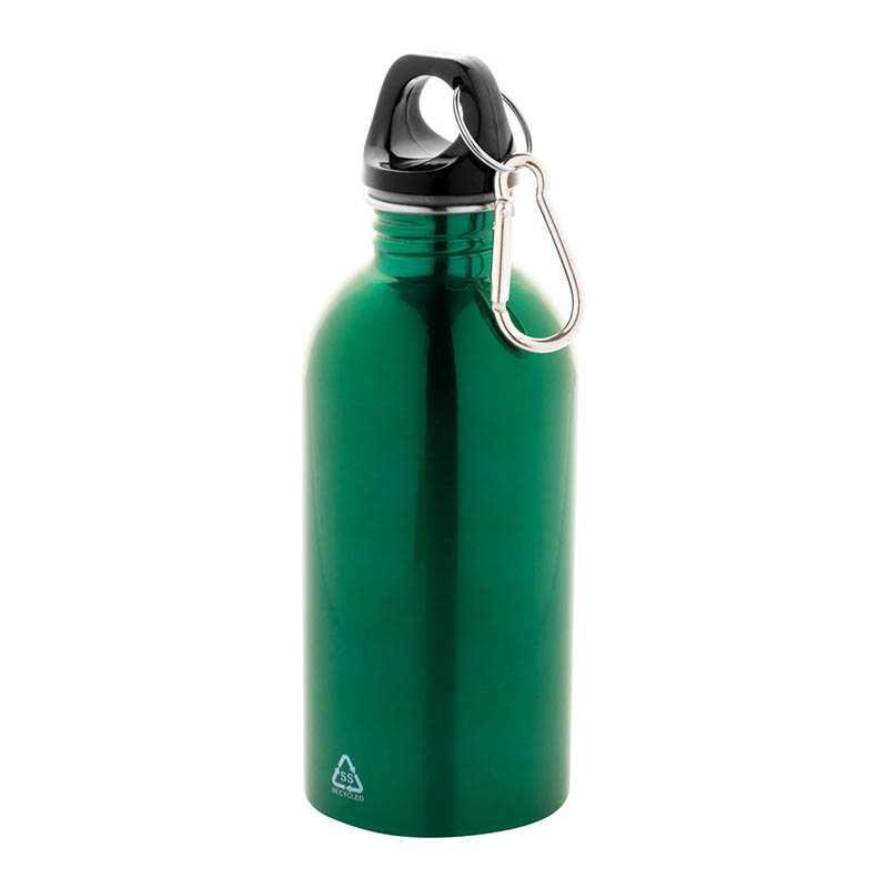 NOVINKA 2025. Fľaša z recyklovanej nerezovej ocele s hliníkovou karabínou, 400 ml.