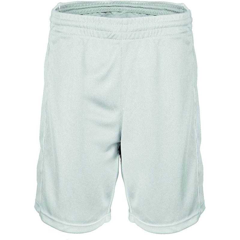 Sports Shorts with Pockets. Made of bi-stretch and breathable polyester fabric infused with elastane to enhance mobility. Elasticated waistband with drawstrings for a better adjustment and a comfortable fit. Two slant hip pockets and a central rear zippered pocket for convenient and securely storage. Double stitching on the bottom hem for added strength and durability. Suitable marking methods: screen printing, transfer printing, vinyl application. Ideal as sportswear.