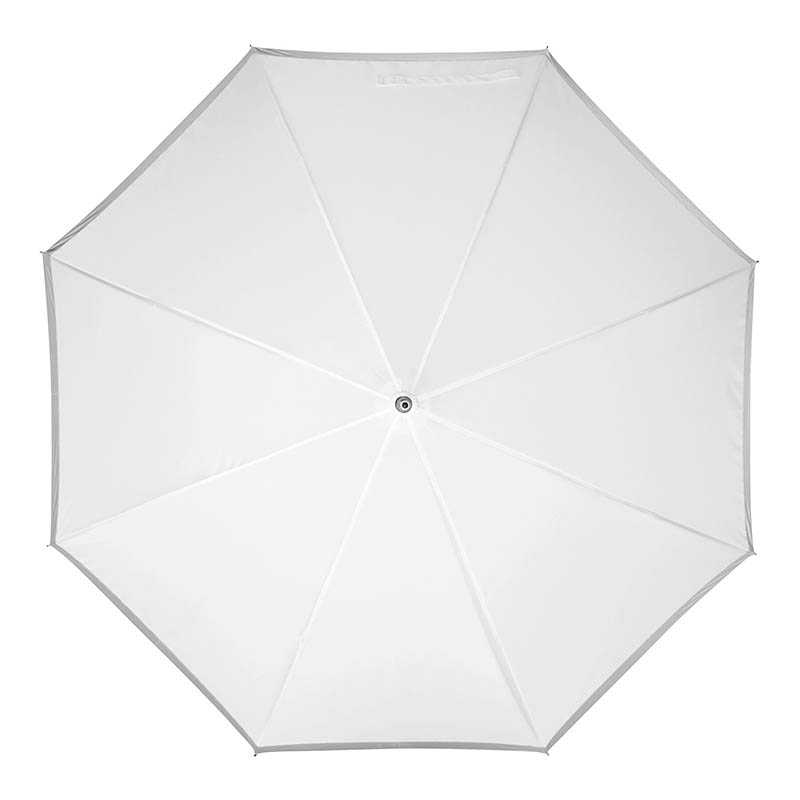 NOVINKA 2025 XMASS. Automatic stick umbrella CALIMA: metal shaft, fibreglass ribs, and metal tips, EVA handle, polyester pongee canopy made from recycled plastic / RPET, with silver reflecting stripe, closure with Velcro