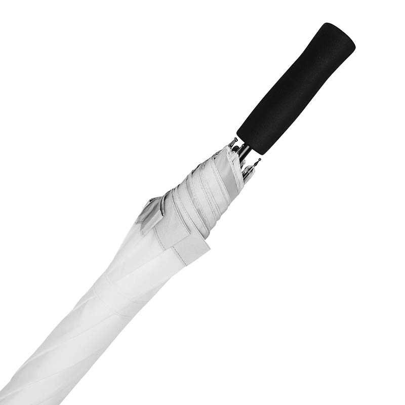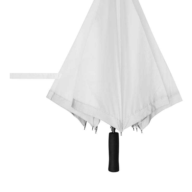 Polyester (210D) golf umbrella with eight panels. Metal frame and EVA foam handle. Including sleeve with carry strap.