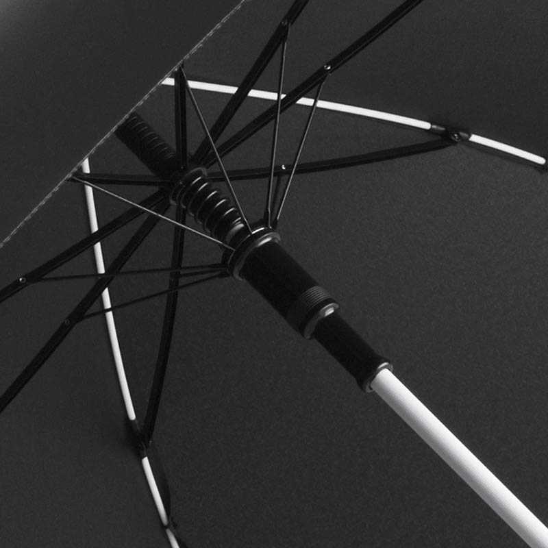 High-quality Windproof PLUS system for maximum frame flexibility in stormy conditions, flexible fibreglass ribs, sturdy fibreglass shaft, straight handle with promotional labelling option, plastic tip cup, large, accommodating diameter
