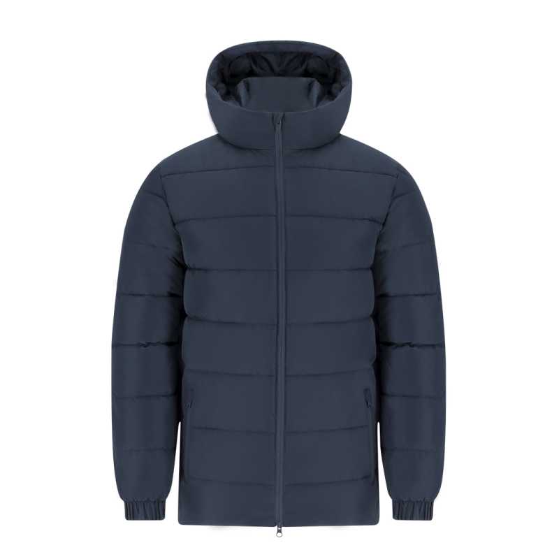NOVINKA 2025. SOFT AND SHINY JACKET WITH WATER-REPELLENT TREATMENT - 100% nylon 380T taffeta fabric - Polyester lining - Soft polyester padding (feather effect) - YKK zippers - Padded hood with elastic fabric trim - Two zipped pockets - An internal pocket with velcro - Cuffs and bottom with stretch fabric - No label