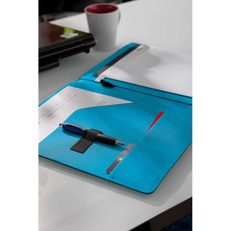 A4 PU conference folder. Notepad (item 8400) and pen not included. Colours: blue/silver gilt corners, black/gold gilt corners.