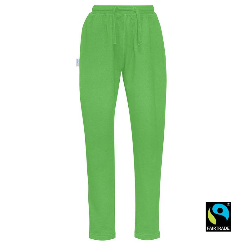 Tepláky s česanou podšívkou. Široká šnúrka v páse, dve bočné vrecká. Zadné vrecko na pánskej verzii. Rovný strih. Materiál: 80% organická bavlna 20% recyklovaný polyester. Gramáž: 280 g/m2. Certifikáty: GOTS, Fairtrade Cotton, Nordic Swan Ecolabel, Oeko-Tex