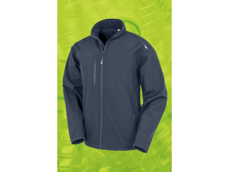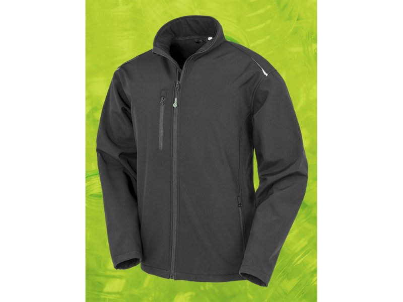 Soft feel, recycled softshell jacket, ideal for all decoration types including print. Equivalent to 19 1-litre bottles worth of recycled material in this garment