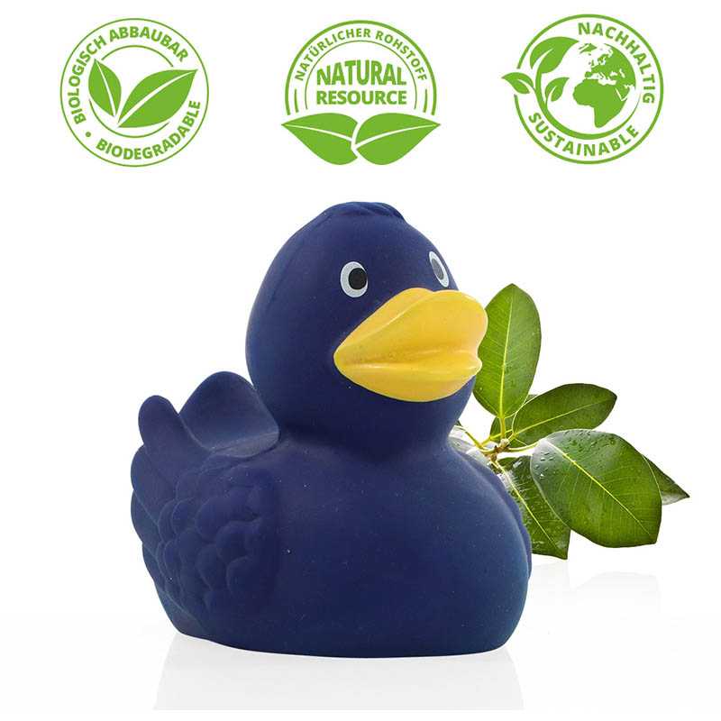 Squeaky duck made of natural rubber, a regrowing and natural raw material