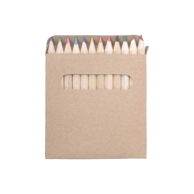 Set of 12 small coloured pencils in a recyclable box.