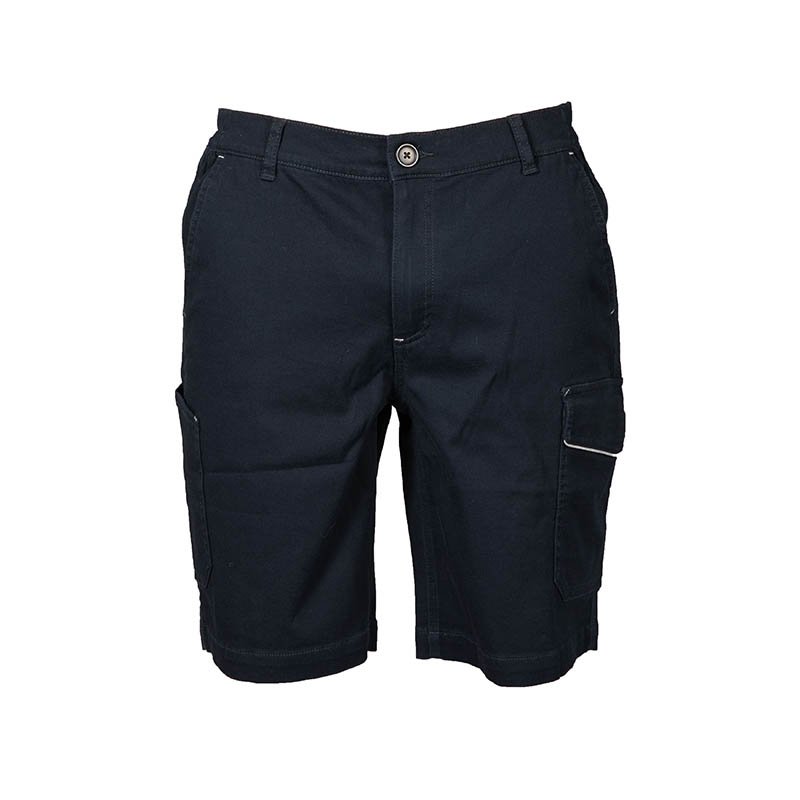 Stretch multi-pocket short pant - Fabric in 65% polyester -33% cotton - 2% elastane - Pre-washed fabric - Double stitching in contrast - Elastic waistband on the hips - Two front pockets - A side pocket with bellows with velcro - Double side pocket for tools or ruler - A back pocket with velcro - Covered snap button at the waist Please wash the garment before wearing it for the first time to preserve its quality over time S42/44 M46/48 L50/52 XL54/56 XXL58/60 3XL62/64