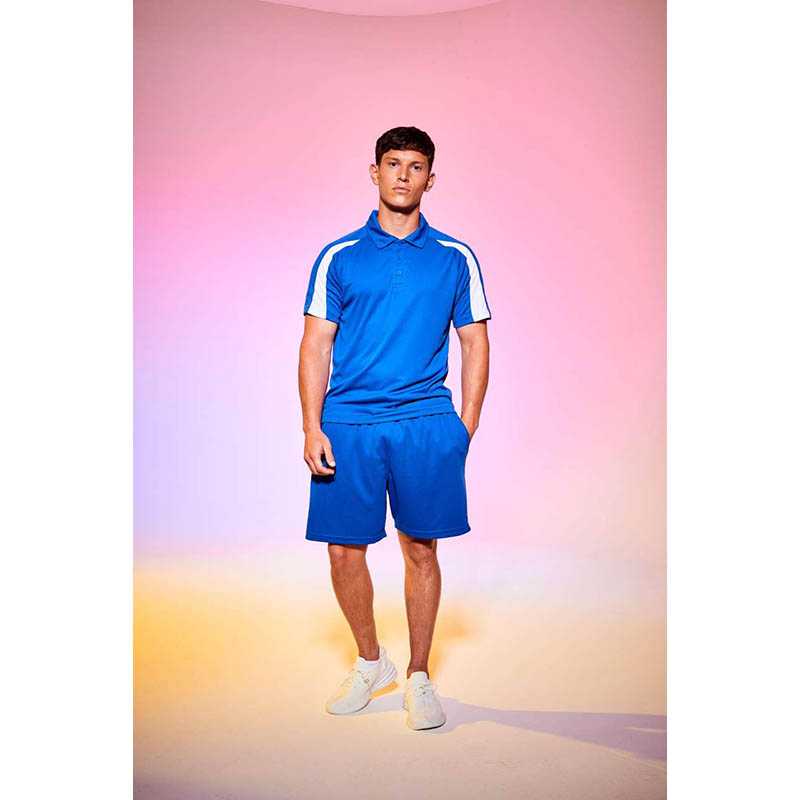 100% piqué cotton (180 g/m2) short-sleeved polo shirt with three-colour trims and two-button collar. Sizes: S/M/L/XL/XXL