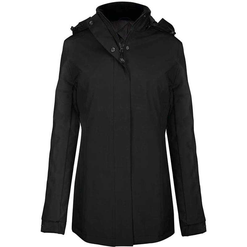 Vonkajšia vrstva: 100 % oxfordský polyester.Vnútorná vrstva: prešívaný polyester.Zapínanie na zips s neviditeľnou záložkou a cvokmi.2 vonkajšie vrecká na zips.1 vnútorné vrecko.Odnímateľná kapucňa.Golier s flísovou podšívkou.Zipsový prístup na ozdobu.