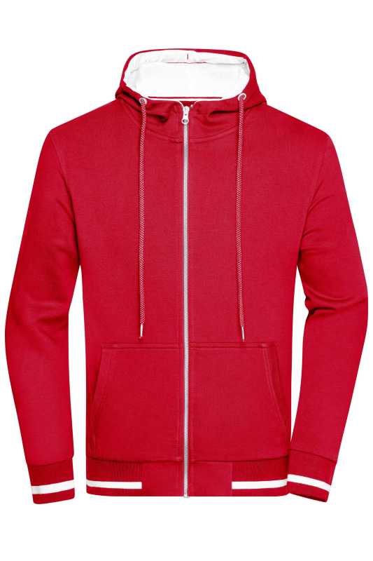 Mikina s kapucí a zipem.Vysoce kvalitní tkanina, náplety s elastanem.Kontrastní pruhy na rukávech a u pasu.Dvouvrstvá kapuce, uvnitř v konstrastní barvě.Kovový zip YKK.Dvě kapsy .1/30 . (ks v jednom sáčku / celkem ks v kartonu).