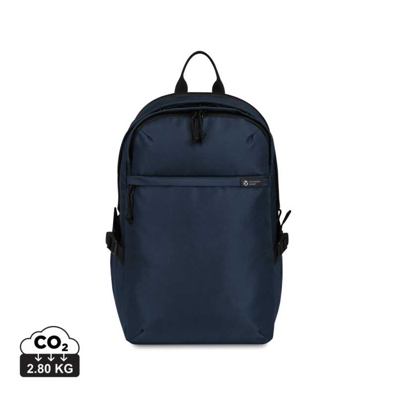 Šarmantní obdélníkový batoh; vrchový materiál RPET; prostorná hlavní přihrádka s 2cestným zipem; polstrovaná přihrádka na notebook; plochá kapsa uvnitř; boční přezky pro pohodlné otevírá