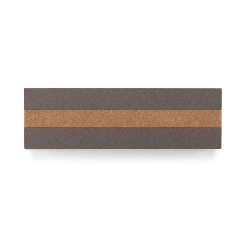 Sada OHIO je elegantní psací souprava odkazující na ekologické trendy. Kovová těla obou per jsou zakončena recyklovanou přírodní kůží. Chromované ozdoby dokonale ladí s přírodním materiálem na těle. Sada obsahuje pero a roller. Modré náplně. Sada je zabalena ve vkusné krabičce z papíru. Víko je zdobeno recyklovanou kůží.
