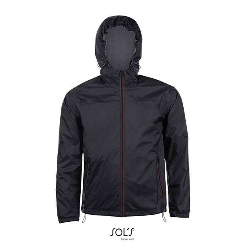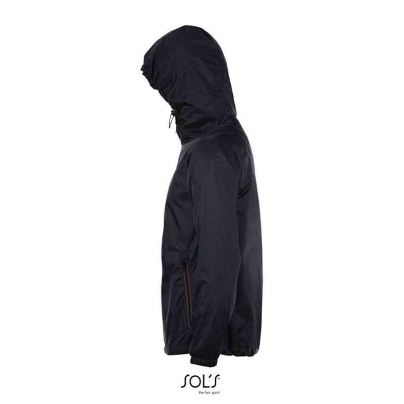 Hooded Waterproof Rain Jacket.Made of three-layered waterproof fabric: waterproof Ottoman outer fabric, breathable PU membrane and lightweight inner mesh lining that blocks water.Thermo-sealed seams and waterproofed zips that prevent water leaks.Elasticated cuffs and straight-cut waist with adjustable elastic drawstring and stopper for a better fit and added comfort. Stand-up hooded collar with full-zip front closure for warmth and comfort, two slanted zippered waist pockets for a secure and convenient storage. Suitable marking methods: screen printing, vinyl application, transfer printing.Ideal for outdoor activities, pairs well with the TRITON Rain Trousers.