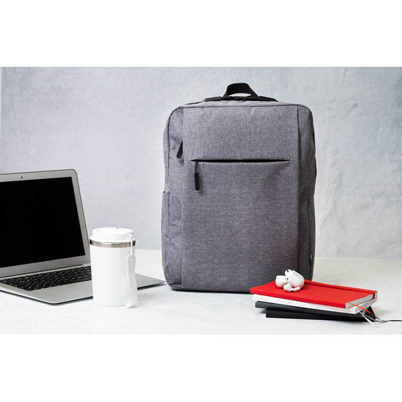 RPET polyester (600D) laptop backpack (15 inch). One large compartment. Small zippered pocket on front.