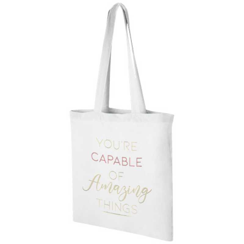 Taška Carolina je praktická a cenově výhodná taška na akce, konference nebo výstavy. Tato lehká taška je ideální pro přenášení lehkých předmětů, jako jsou brožury, letáky nebo dárky. Díky 30 cm dlouhým ramenním popruhům se tato taška snadno přenáší. Vyrobeno v Indii z bavlny s certifikátem OEKO-Tex o gramáži 100 g/m2. Maximální nosnost 5 kg.