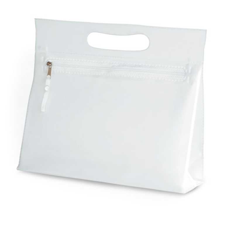 PVC frosted toilet bag with integrated handle and zipper.