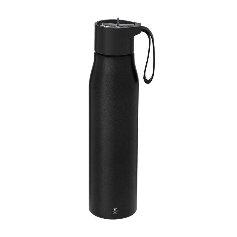 NOVINKA 2025. 700 ml capacity bottle made from Recycled Aluminum in matte finish. Easy-opening system free of BPA with straw dosing and matching silicone strap for easy transport. Featuring a Recycled Aluminum logo.Recycled Aluminum is a material with almost infinite recycling possibilities, without losing its original properties and consuming less energy in this process.GRS certification (Global Recycled Standard), which guarantees the recycled origin of the material used to manufacture the product.