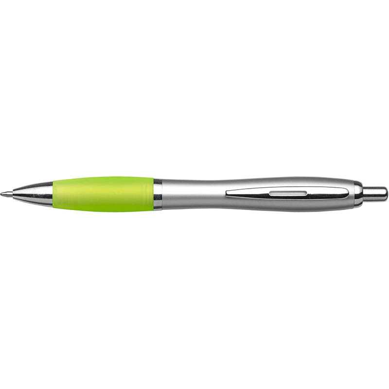 Blue or black ink ballpoint pen with textured grip, coloured clip and push button. Please state your preference when ordering.