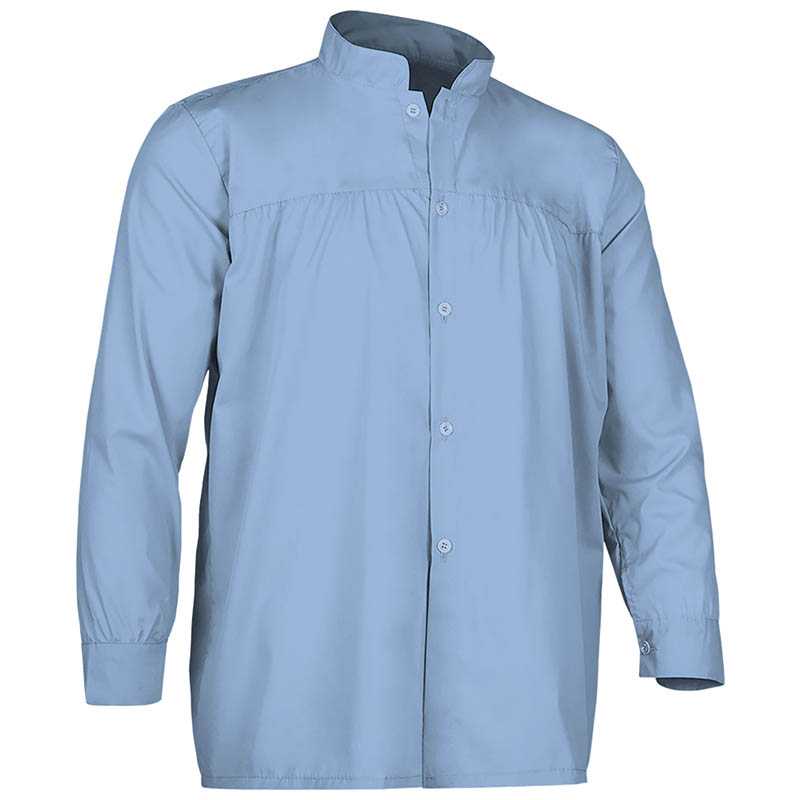Long Sleeve Smock for Local Festivities.Made of a lightweight cotton-polyester blend poplin fabric for strength and durability. Elevated open crewneck, matching button front closure featuring a bottom space for optional knot waist fastening.Gathered yoke for enhanced looseness and added comfort.Long sleeves with buttoned cuffs for a better adjustment and greater comfort.Suitable marking methods: screen printing, embroidery, transfer printing, vinyl application. Ideal as festive clothing, promotional clothing and to dress up groups of people.
