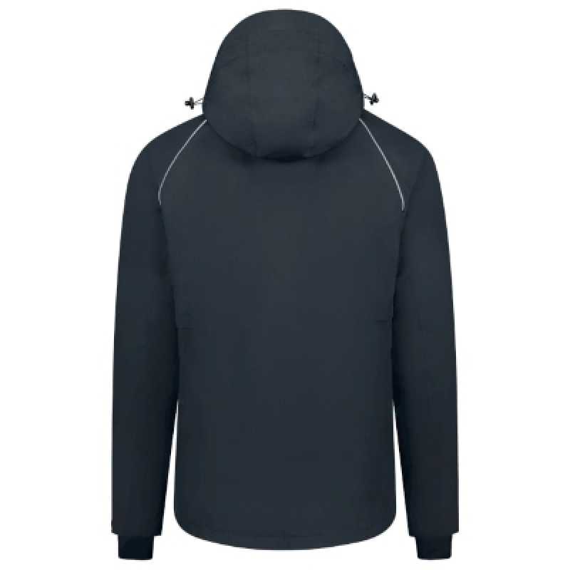 Functional layer 3 wind and water repellent softshell jacket. Quilted padded lining.Two breast pockets, left with inner phone pocket. ID card holder. Two inner pockets with zipper, one bigger for documents etc. Two side pockets. Sleeve pocket on the left arm. Inner pocket on the left side with handsfree opening. Ventilation zippers under armpits. Drawcord waist. Adjustable cuffs. Extended back panel for better comfort. Reflective piping on sleeves and back. Removable and adjustable hood. Fleece lined collar and side pockets for better comfort. Material: 100% Polyester Colour: red-35, navy-58, graphite-94 black-99 Size: XS-XXXL