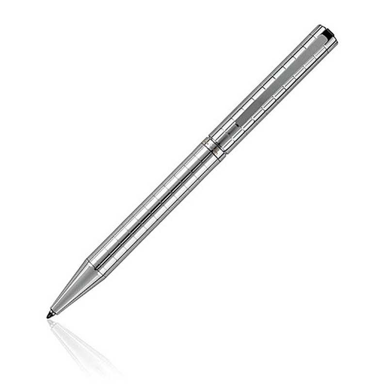 Kuličkové pero značky Pierre Cardin. Pero má velmi elegantní tvar, jemné rytí po celém provrchu, otočný mechanismus a obsahuje kvalitní náplň v modré barvě s hrotem 1 mm. Dodáváno s náhradní černou náplní v luxusní krabičce s certifikátem pravosti. Rozměry: kuličkové pero 1,2 × 14 cm; balení 17,5 × 3,5 × 5,5 cm. Uhlíková stopa: gCO2 e239.