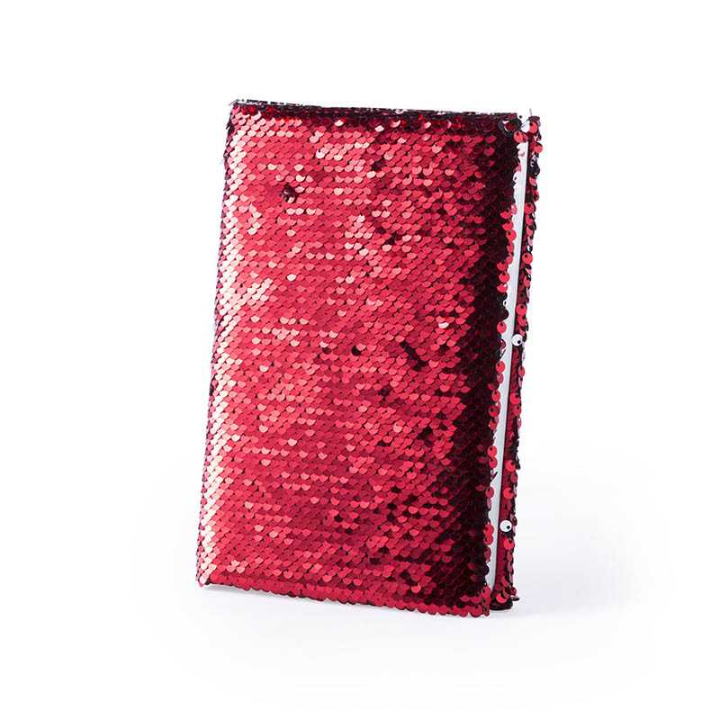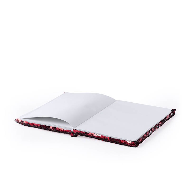 NOVINKA 2025. Interactive sequin notepad in eye-catching metallic colors. When sliding your finger on the surface, its color changes. Including 80 plain white sheets.
