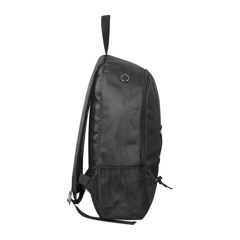 Batoh z recyklovaného polyesteru 600D s pútkom na zavesenie, dvoma bočnými sieťkami a dvoma polstrovanými ramennými popruhmi, s kapacitou 13 l.