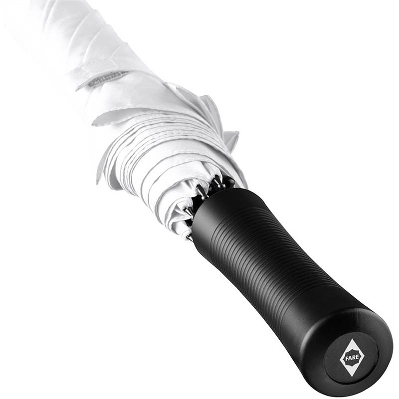 Deštník BETILLA se otevírá automaticky. Stříška je vyrobena ze sklolaminátu, potah je vyroben z polyesteru 190T. Bílý rám v kombinaci s černou rukojetí působí originálně a moderně. Průměr stříšky v rozloženém stavu je 120 cm a délka složeného deštníku je 100 cm.
