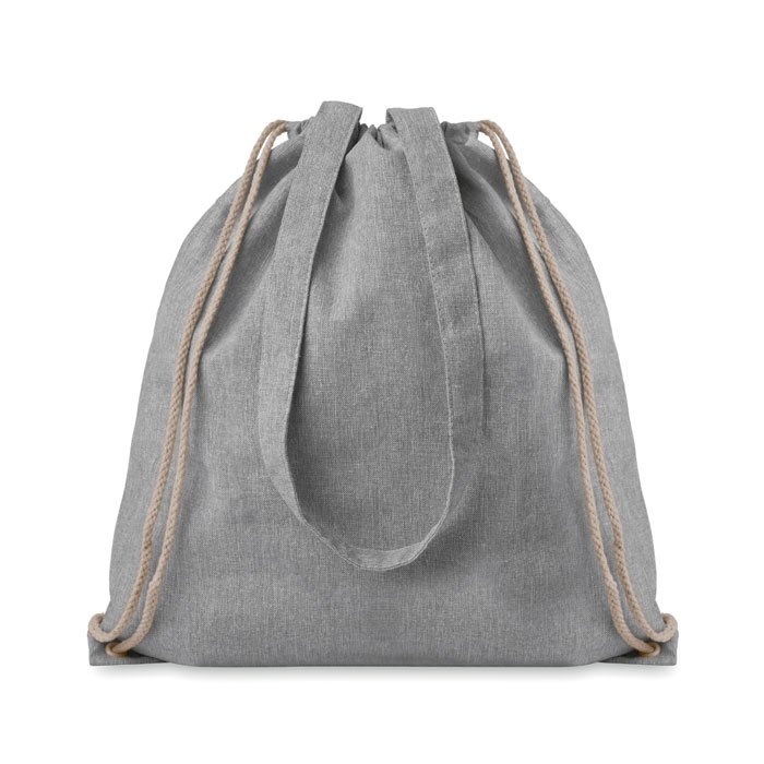 Nákupní batoh ze 100% recyklované tkaniny s dlouhými uchy a stahováním. 140 gr/m2 (20%/80%). Tato položka se po otisku může zmenšit.